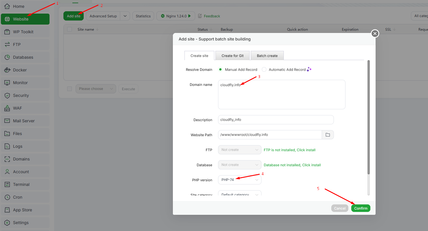 Hướng dẫn sử dụng aaPanel cơ bản: thêm domain, upload source code, tạo database