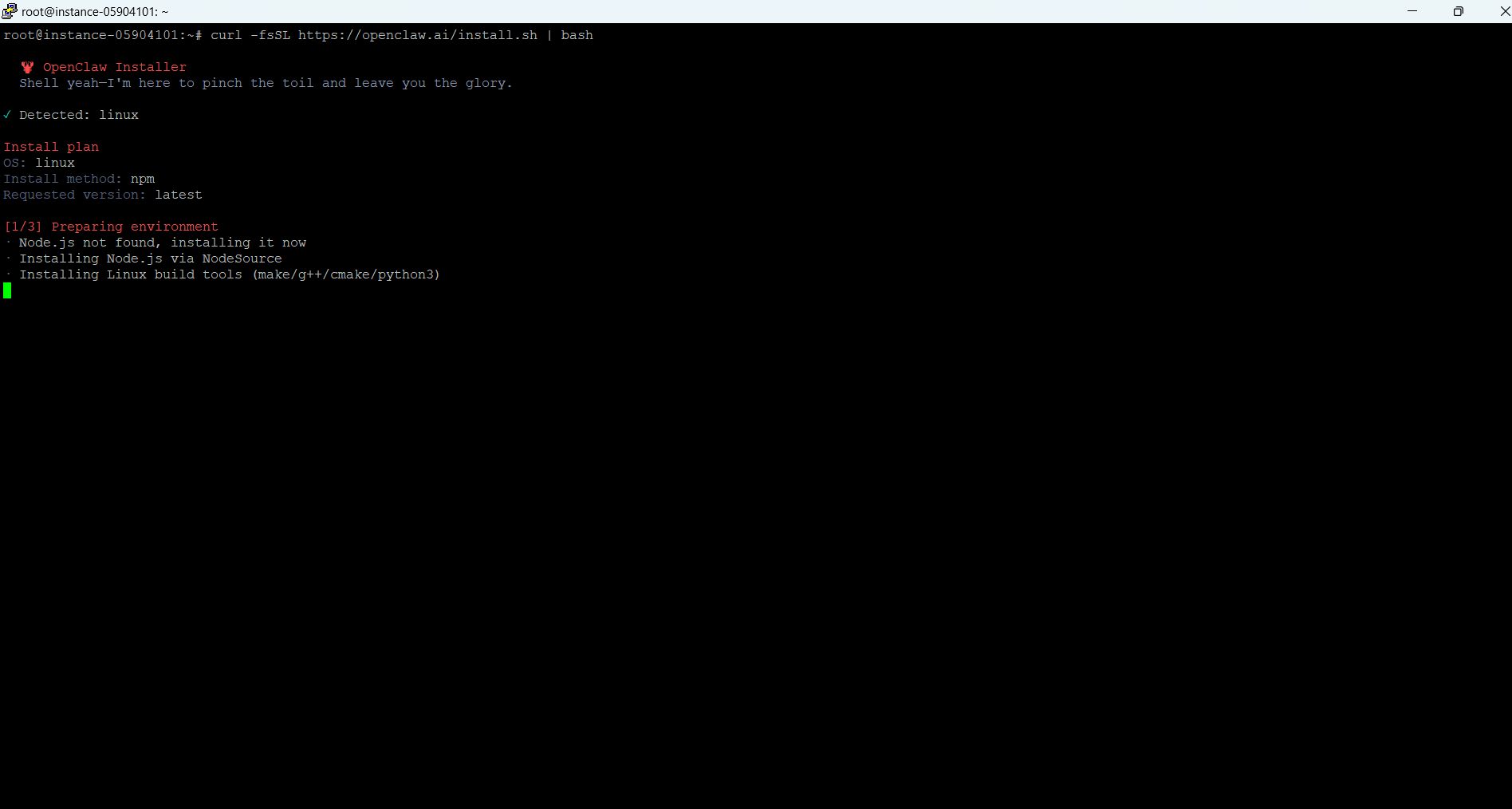 curl -fsSL https://openclaw.ai/install.sh | bash